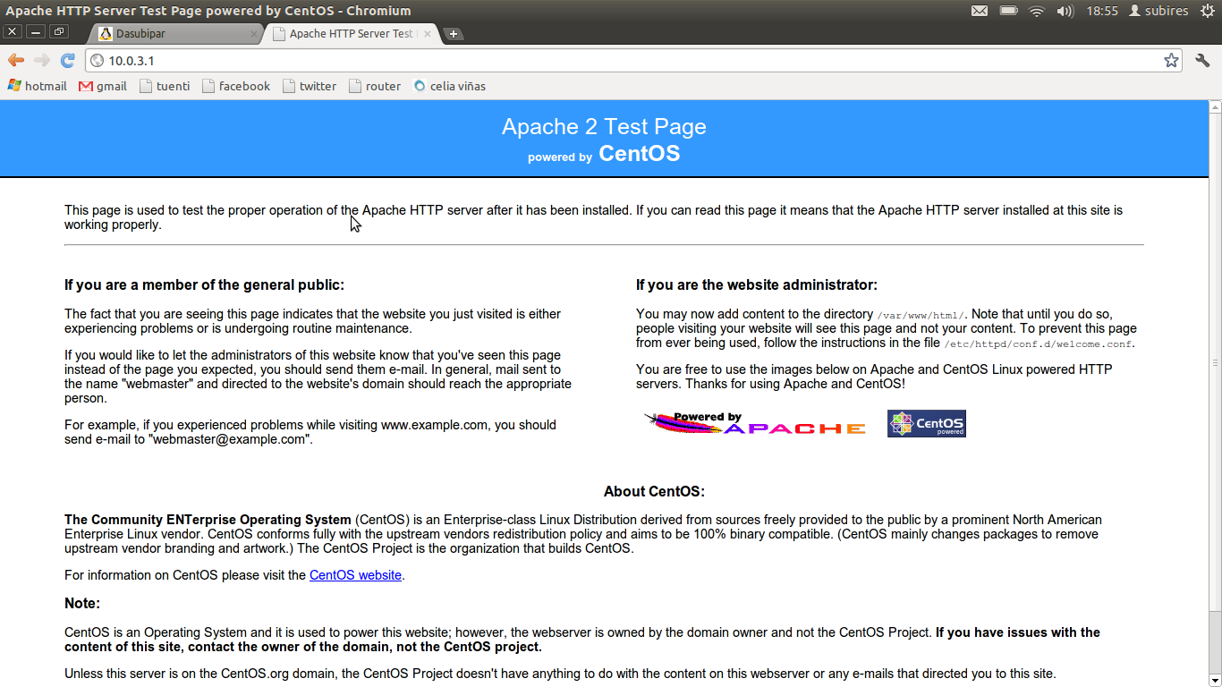 Podemos comprobar que el servidor apache está funcionando accediendo a la dirección ip del servidor desde otro ordenador en la red: